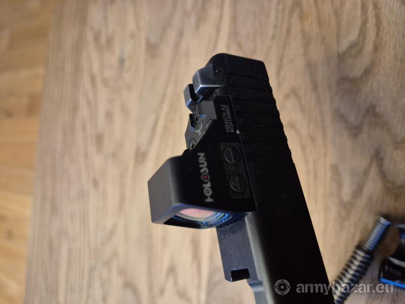 Opis: Z powodu zaniku bakcyla strzeleckiego sprzedaję pistolet Glock 19 gen5 + kolimator Holosun 407K. Sam pistolet używany kilka lat, wszystkie elementy jak sprężyna powrotna, czy sprężyna iglicy wymieniane na bieżąco, czyszczony, technicznie 100% sprawny. Nosi ślady używania (otarcia od kabury) Zamek był wyfrezowany pod kolimator w zakładzie rusznikarskim MWT w listopadzie 2025- wspaniała robota. Wtedy też zakupiłem i zamontowałem nowy kolimator Holosun 407K (plamka 6moa, czerwona, wyraźniutka). Z kolimatorem broń na strzelnicy była dosłownie 3 razy. Trzyma zero, żadnych problemów. Ta częstotliwość strzelania to właśnie powód sprzedaży Kontakt 690 Dwa Trzy Jeden 967