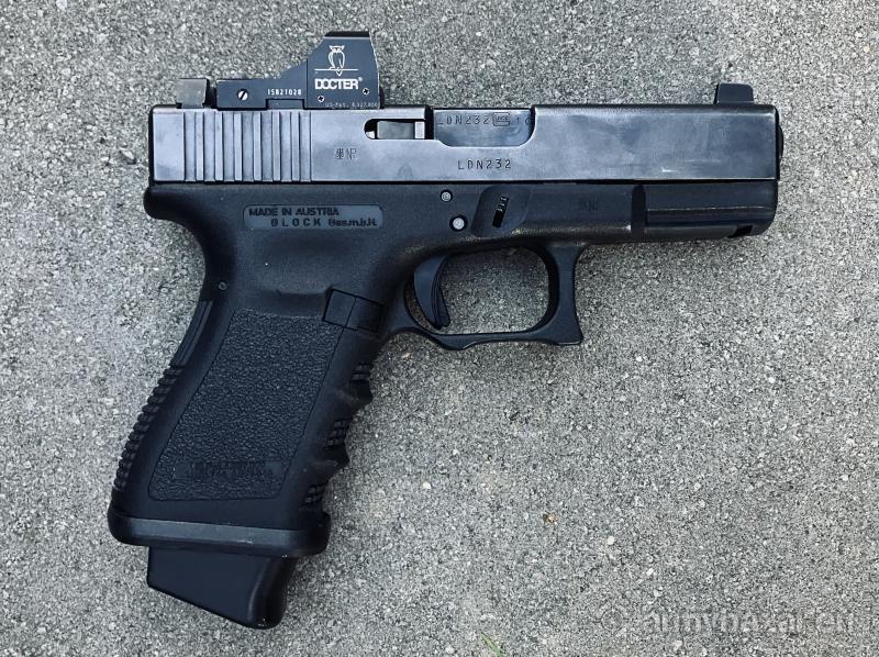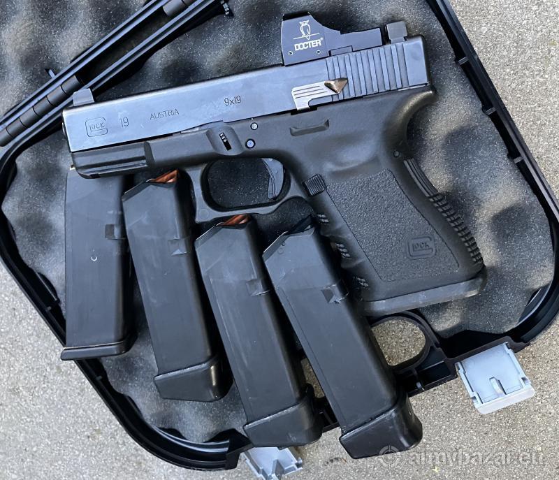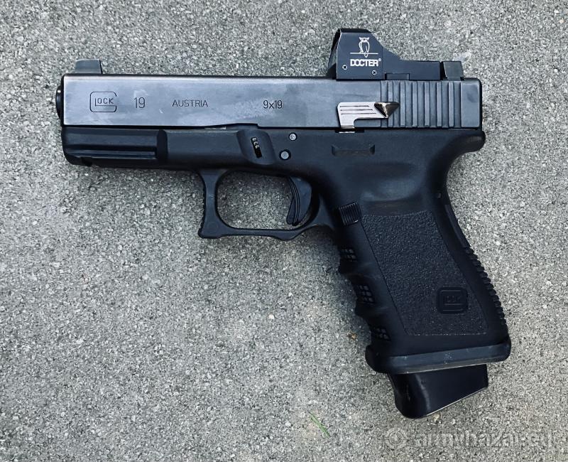 Opis: Na sprzedaż pistolet Glock 19 generacji 3 wraz z kolimatorem na frezowanym zamku. W komplet zestawu wchodzi: - kolimator Docter Sight II (frez zamka pod footprint Docter, kompatybilny z kolimatorami Vortex, Burris Fastfire etc.) - Podwyższone przyrządy celownicze firmy Ameriglo zapewniające lower 1/4 cowitnes - Zrzut zamka Kagwerks - Magwell Magpul - Przerywacz i sprężynki firmy Ghost - 4 magazynki w komplecie - Undercut kabłąka Same dodatki w glocku to koszt około 2900zł. Pistolet w bardzo dobrym stanie, nie zacina się, jest bezproblemowy jak to Glock.