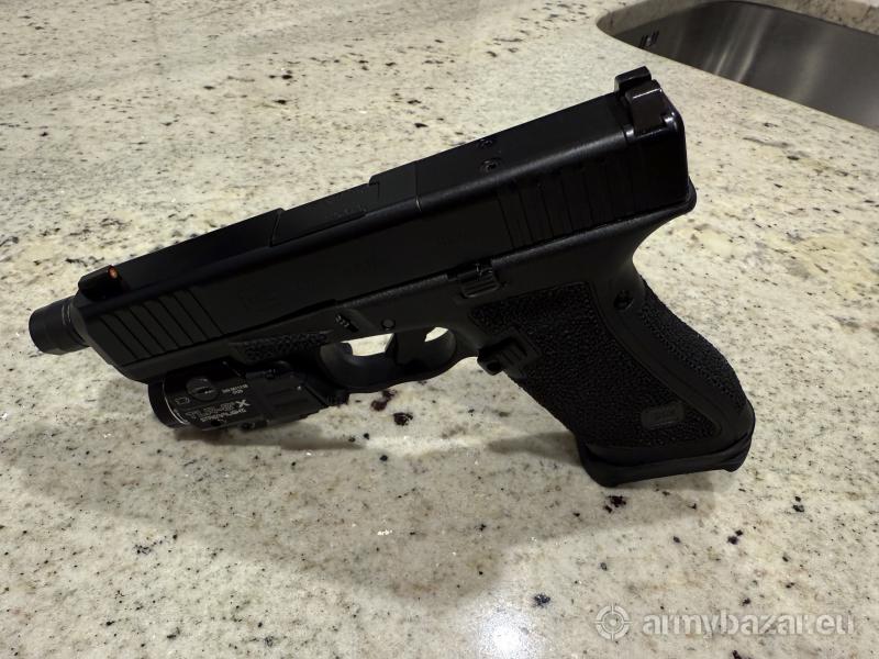 Opis: Glock 45 MOS TACTICAL Przyrządy celownicze stalowe fluo+tryt Mephrolight Stippling robiony przez Rogera. Nalot 1200 sztuk S&B Stan perfekcyjny ,czyszczony po każdym strzelaniu. Cena ostateczna Rzeszów/Lublin/Warszawa /Krakow