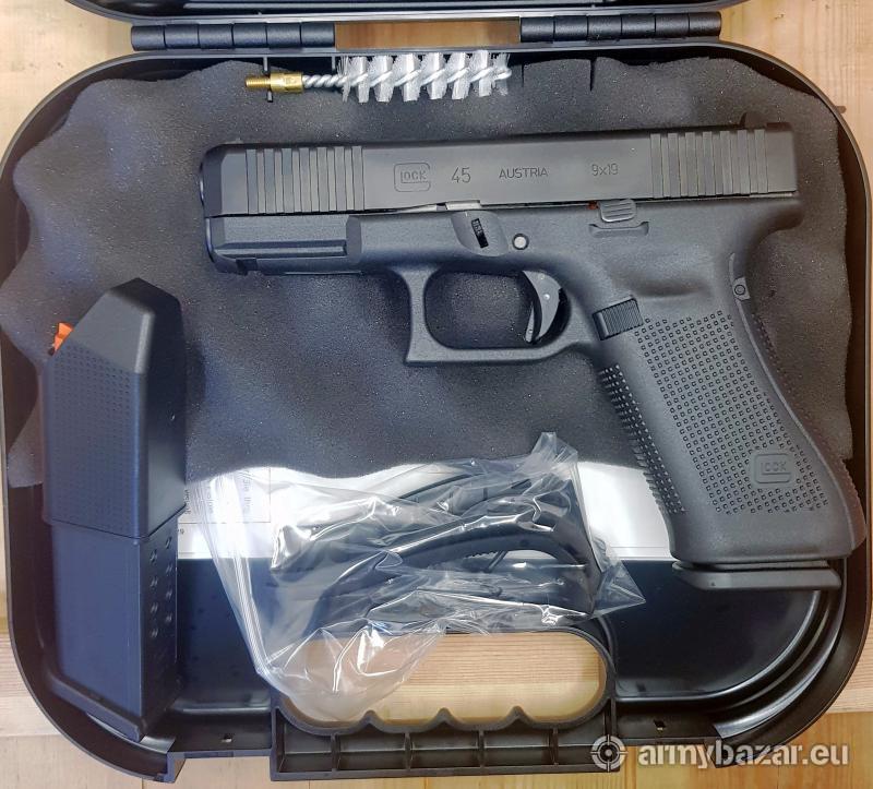 Opis: Nowy pistolet GLOCK 45FS gen.V w kalibrze 9x19mm łączy w sobie kompaktowy zamek G19 z pełnowymiarową ramą G17. Kaliber: 9x19 # Poj. magazynka: 17 # Szkielet: polimer # Dł. lufy [mm]: 102 # Dł. całkowita [mm]: 189 ; Wysokość [mm]: 139 ; Szerokość [mm]: 34 ; Waga [g]: 616 # powiększony obustronny przycisk zwalniania magazynka # zmodyfikowana korona lufy # dodatkowe wymienne okładki rękojeści # płatność gotówka