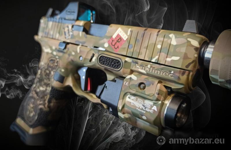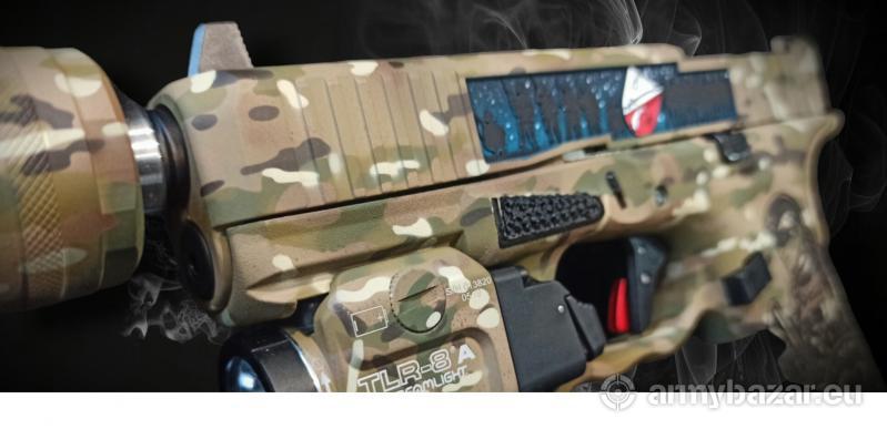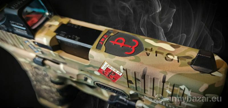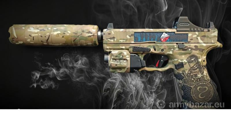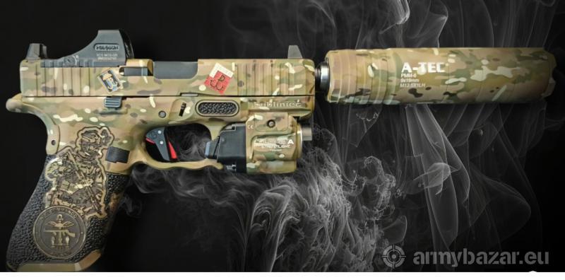 Opis: Wystawiam na sprzedaz Glocka45 wykonanego na 1000czną aukcję dla "Fundacji Wspieram Cicho i Skutecznie" funkcjonującej przy JWK w Lubliću. Aukcja odbyła się w IX 2023r - zakupiłem ją w celach kolekcjonerskich, broń nie była używana. Specyfikacja wykonania: Latarka streamlight TLR-8A Urządzenie wylotowe A-Tec PMM-6 Spust Timney regulowany Kolimator Holosan Podwyższone przyżady celownicze Malowanie Cerakote Jankomag Grawerka i stippling Roger Stippling