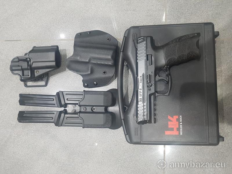 Opis: Sprzedam pistolet H&K SFP9 kal. 9x19 Para. Pistolet strzelany ale zadbany, w zestawie: Pistolet, cztery magazynki, ładownica na 2 magazynki, dwie kabury, oryginalna walizka. Broń palna, wymagane pozwolenie na broń. Tylko kontakt telefoniczny.