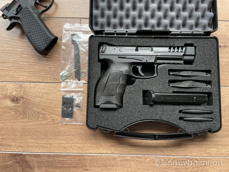 Opis: Pistolet kupiony 18.11.2021,stan -5 lekkie wytarcie dzwigni zrzutu zamka,wystrzelone Ok 800sztuk Bellotki,bardzo zadbany prawie jak nowy.Spust wymieniony orginalne z HK Parts,dorzucam orginalne płytkę pod kolimator Vortex.