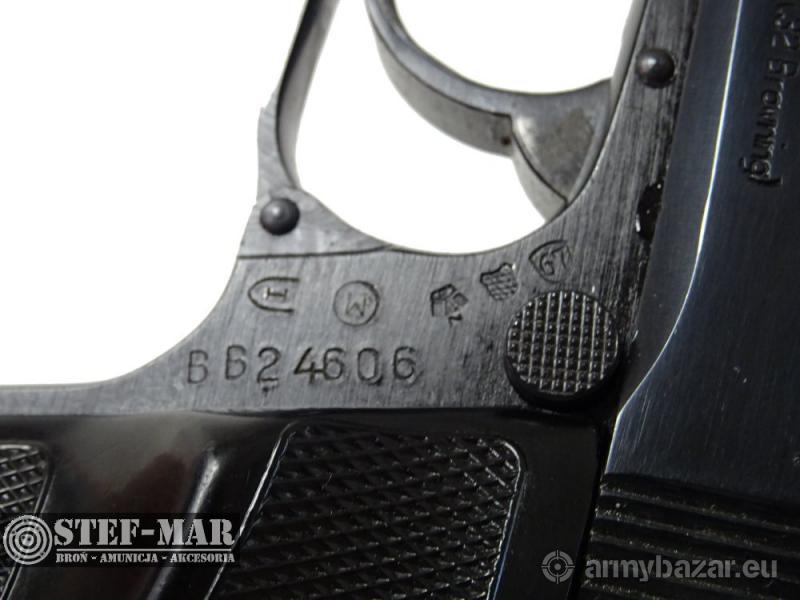 Opis: Broń używana, sprawna w 100%. Pistolet niemieckiej produkcji, projektowany na wzór węgierskiego FEG PA-63, który z kolei wywodzi się z niemieckiego Wlathera PP. Stan broni dobry, jak przedstawiony na zdjęciach. Stan lufy jest dobry, gwint wyraźny. Broń po przeglądzie rusznikarskim, przestrzelona na strzelnicy. Dane techniczne broni: - dł całk: 177mm - dł lufy: 99mm - waga: 610g Do broni dołączam fakturę VAT/fakturę VAT marża. W razie pytań proszę dzwonić właściciel 501 682 999, biuro 516 904 226 Możliwość dostarczenia broni we wcześniej uzgodnione miejsce w kraju. BROŃ OSTRA! Wymagane jest pozwolenie na broń. Nr broni: 24606 Nr kat: C159