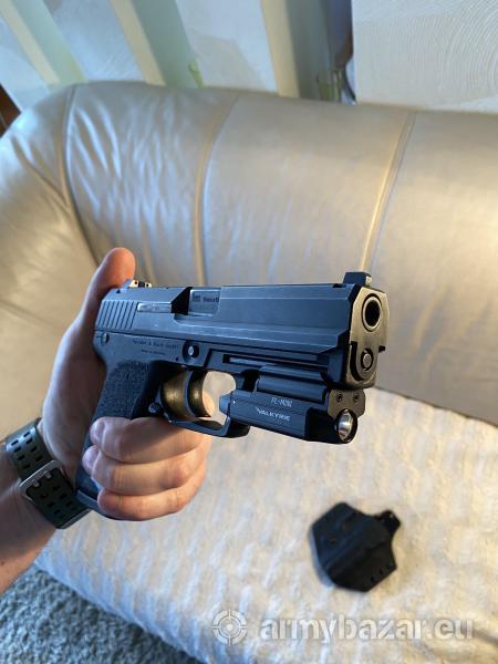 Opis: Heckler & Koch USP w wersji dla wojska czyli P8. Od cywilnego USP rozni sie zewnetrznym zabezpieczeniem spustu. Tak wiec jest mozliwosc zrzucenia kurka do pozycji double action i dodatkowo zabezpieczeniu spustu. Bron w doskonalym stanie z okladzinami Trijicon i trytowymi urzadzeniami celowniczymi tej samej marki. Dorzucam rowniez oryginalne przyrzady celownicze i sportowe - swiatlowodowe. Kabura z Kydexu, 3 magazynki i walizeczka.