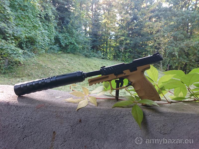 Opis: Sprzedam HK SFP9 z gwintem pod tłumik ( z nakrętką zabezpieczającą) przebieg 500 -1000 szt. Kaburą prawą IWI i tłumikiem z systemem nilsena . Śląsk-Małopolska 735-370-893
