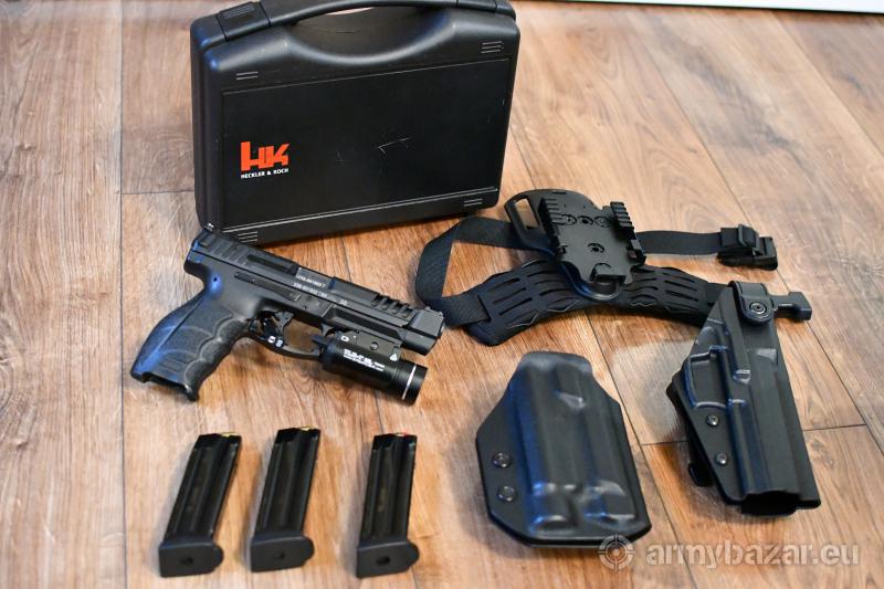 Opis: Czołem! Sprzedam HK SFP9L w komplecie z trzema magazynkami i dwiema kaburami na montażu QLS. Dokładam chińską kopie TLR-7. Przebieg 3-4 tys. Nigdy nie liczyłem. Stan bardzo dobry, wszystko działa, po prostu mi się znudził Możliwa również zamiana na coś ciekawego. Klasyk w stylu 1911 lub 92FS, ewentualnie coś mniejszego do noszenia jak G26 lub G19. Dopłata w obie strony. Masz propozycję - pisz.
