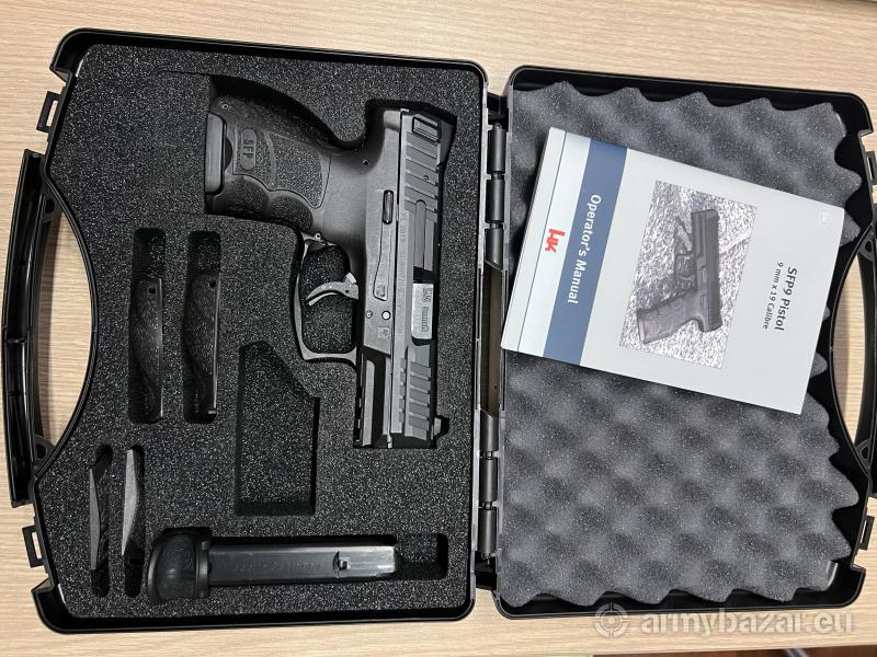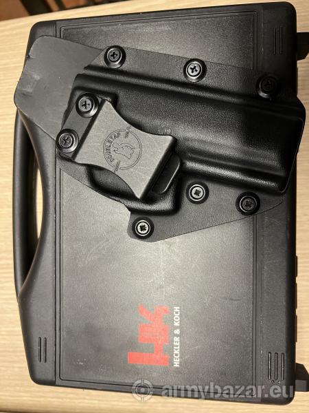 Opis: Sprzedam praktycznie nowy pistolet HK SFP9SK. Kupiłem z przeznaczeniem na EDC ale w związku z wykonywaną pracą nie mam jak go nosić więc leży w szafie. Szkoda żeby się marnował. Był ze mną dwa razy na strzelnicy - wystrzelałem nim jakieś 4 magazynki. Pistolet w idealnym stanie (co widać na zdjęciach). Cały komplet jak z fabryki. Dodaje kaburę IWB od DoubleTap oraz kopytko przedłużające rękojeść (oryginalna stopka magazynka w zestawie.
