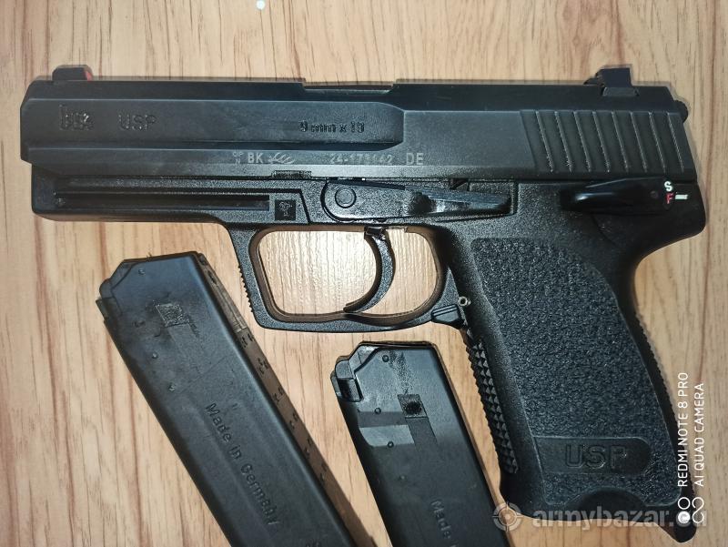 Opis: Pistolet HK USP 9mm, rok produkcji 2019, przelot 600 szt, minimalne przetarcia na zamku ,dorzucam kaburę IMI.