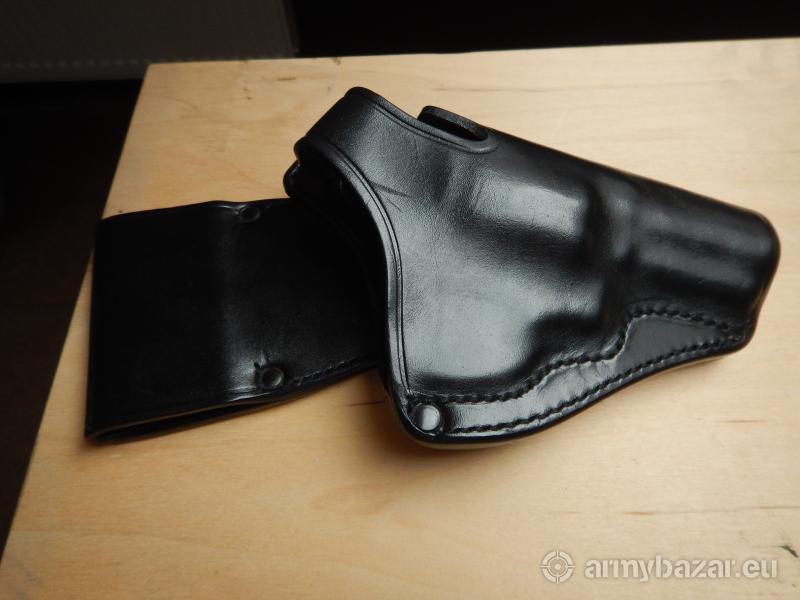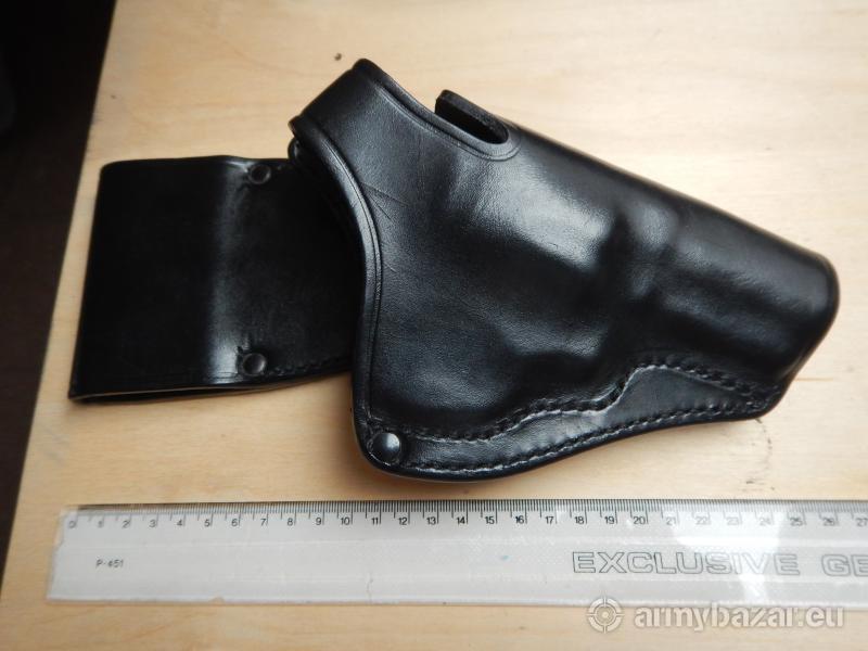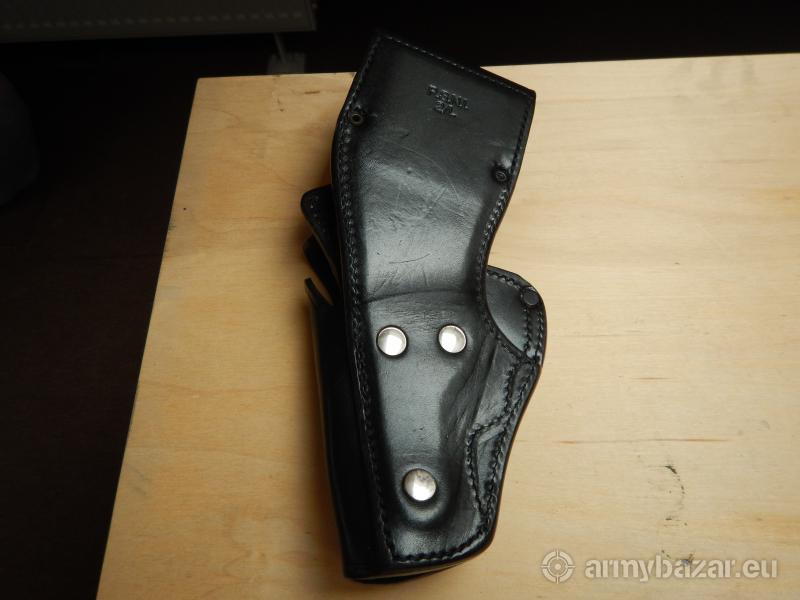 Opis: Kabura do rewolweru z lufą 3-calową. Skórzana, prawostronna. Stan bdb.