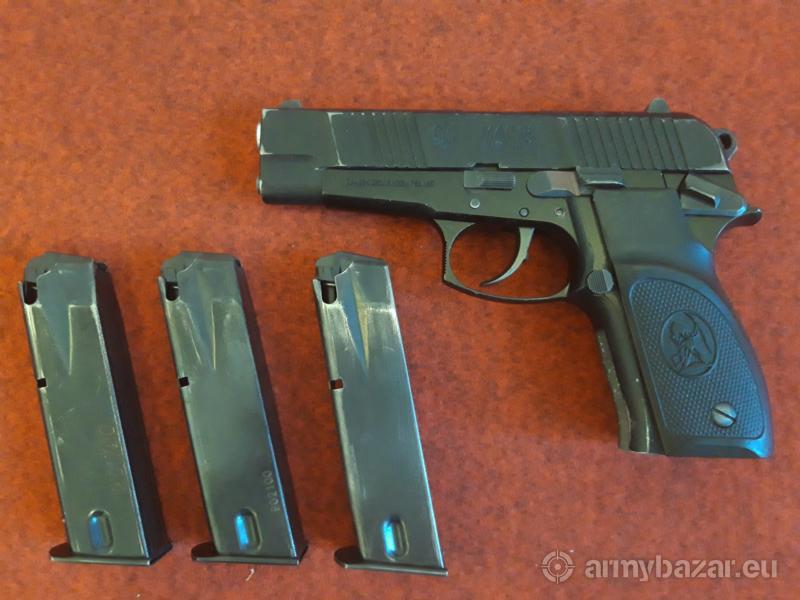 Opis: Z racji, iż nie mam zacięcia kolekcjonerskiego a przedmiotowy pistolet tylko u mnie leży więc pomyślałem, że może ktoś inny będzie chciał go mieć i się nim cieszyć. Kupiony od kolekcjonera, który twierdził, że pochodzi ze SW czyli 'więcej noszony niż strzelany'. W sumie potwierdzała by to lufa a dokładnie brak śladów intensywnego strzelania. Normalne wytarcia powłoki zamka od częstego wkładania i wyjmowania z kabury. Lufa błyszcząca, gwint wyraźny. U mnie wystrzelił max 300szt amunicji S&B. Obecnie od grudnia 2017 leży w szafie i się kurzy. Gratis dokładam kaburę Kajman oraz ładownice na dwa magazynki.