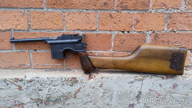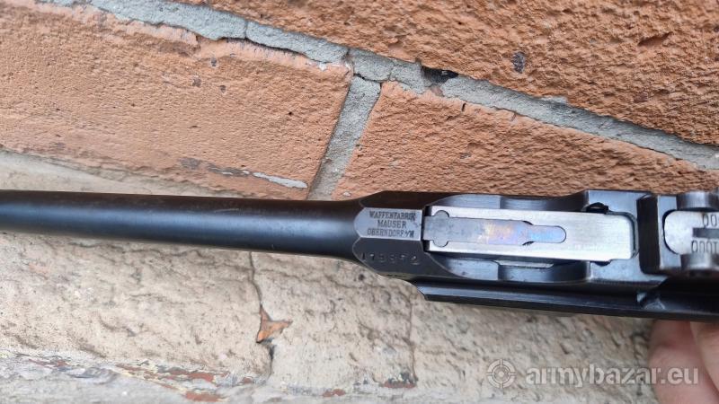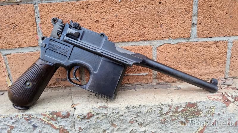 Opis: Kolejna z ikonicznych broni okresu I wojny światowej oraz okresu międzywojennego. Niemiecki samopowtarzalny Mauser C96 zaprojektowany w 1896 roku szybko zdobył uznanie zarówno w Niemczech jak i w innych państwach na świecie. Pistolet w stanie bdb, w pełni zgodny numerycznie łącznie ze zgodną kaburokolbą. Oksyda wygląda na oryginalną. Piękna perełka w rozsądnej cenie do dobrej kolekcji. Stan techniczny bdb, lufa w stanei dobrym. Gwint wyraźny, ale zmatowiony i pokryty kaszą. tel. 882 489 978 www.arsenalsilesia.pl DOWOZY