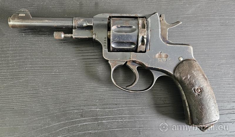 Opis: Oryginalny radomski Nagant wz.30. Rewolwer został zdobyty w 1939 przez sowietów, którzy usunęli napis Radom, broń ma rownież sklepany numer na szkielecie, jednak jest on wciąż czytelny. Nagant nie przeszedł żadnego radzieckiego remontu, dzięki czemu zachowała się polska, przedwojenna oksyda. Wszystkie części sa ponumerowane i zgodne, lufa i bęben w stanie bardzo dobrym. Proszę o kontakt tylko poważnie zainteresowanych, cena do negocjacji. 605200538