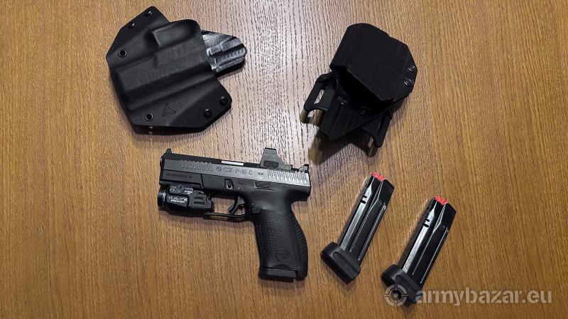Opis: P10C OR (Optic Ready), zakupiony w kwietniu ubiegłego roku w Pruszkowskim sklepie Bazooka. Działa wszystko sprawnie, nigdy nie sprawiał problemów, nie było żadnych zacięć, strzelałem najpierw głównie na S&B i Magtechu, później na B-N. Regularnie czyszczony. Pełen sklepowy zestaw + dodatkowy magazynek. Dwa magazynki mają dodatkowe stopki +2 naboje, jeden jest standardowy. Kolimator, latarka i kabury dostępne osobno. W grę wchodzi ew. wymiana na polimerowy pistolet Full Size (z dopłatą, bez, lub ew. w zestawie z pozostałymi elementami) - w zależności od wartości tego pistoletu.