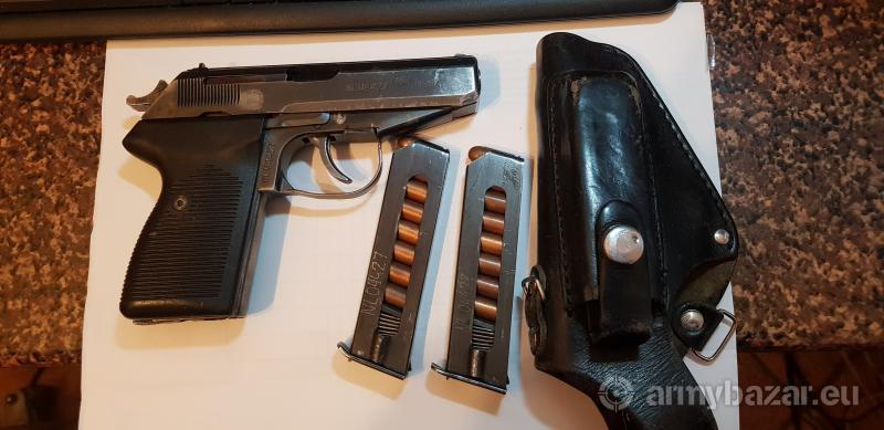 Opis: Broń Bardziej noszona ,niż strzelana ok 100x. Sprawna w 100 % , w kompl. 2x magazynek, kabura skórzana, wycior metalowy ok 50 szt. amunicji.