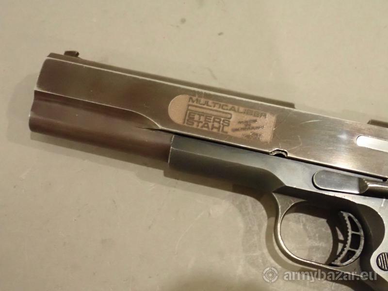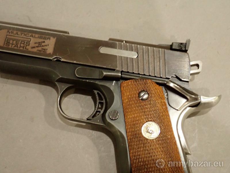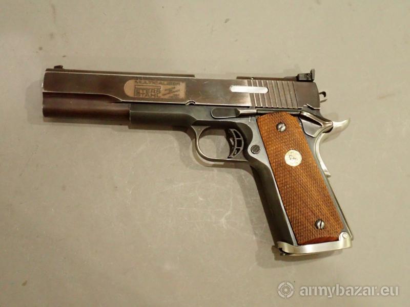 Opis: Bardzo ciekawy pistolet . Zbudowany w Niemczech na szkielecie Colta seria 70. Multikaliber to pistolet jedyny w swoim rodzaju . Zamek tego pistoletu obsługuje różne kalibry bez konieczności jego wymiany .W tym konkretnym przypadku jest dwu kalibrowy ( 9x19 para oraz 45 ACP ).W skład zestawu w chodzą dwie lufy w/w kalibrów oraz dwa kompatybilne magazynki . Oferta skierowana wyłącznie do osób posiadający zaświadczenie uprawniające do nabycia broni wystawione przez policję oraz podmiotów koncesjonowanych . Broń do kupienia i obejrzenia w firmie REGIMENT Warszawa .