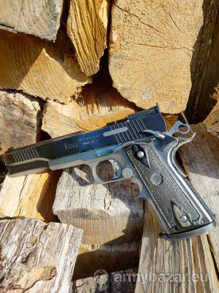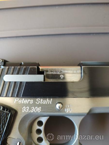 Opis: Do sprzedania mam pistolet tarczowy klasy state of the art z nieistniejącej już niestety manufaktury Peters Stahl. Ręcznie pasowany model Multicaliber dual tone w kalibrze 9×19 Para. 6 calowa lufa z poligonalnym gwintem. Przyrządy celownicze LPA z pełną regulacją szczerbinki. Matchowy spust. Manipulatory z wysoko polerowanej stali chirurgicznej. Drewniane okładziny Pachmayr. 9 nabojowy magazynek Mec-gar z gumową stopą. W zestawie dodatkowe 5 magazynków 10 nabojowych Mec-gar, oryginalne gumowe okładziny Pachmayr. Wymieniony komplet sprężyn. Sprzedaż z zachowaniem reżimu UoBiA. tel. 603 912 662. Pozdrawiam.