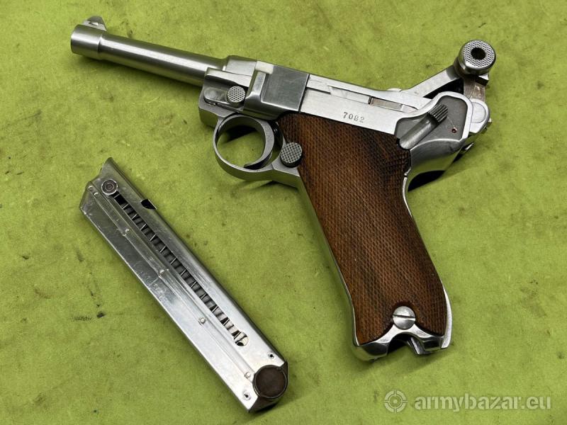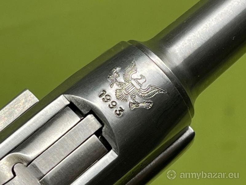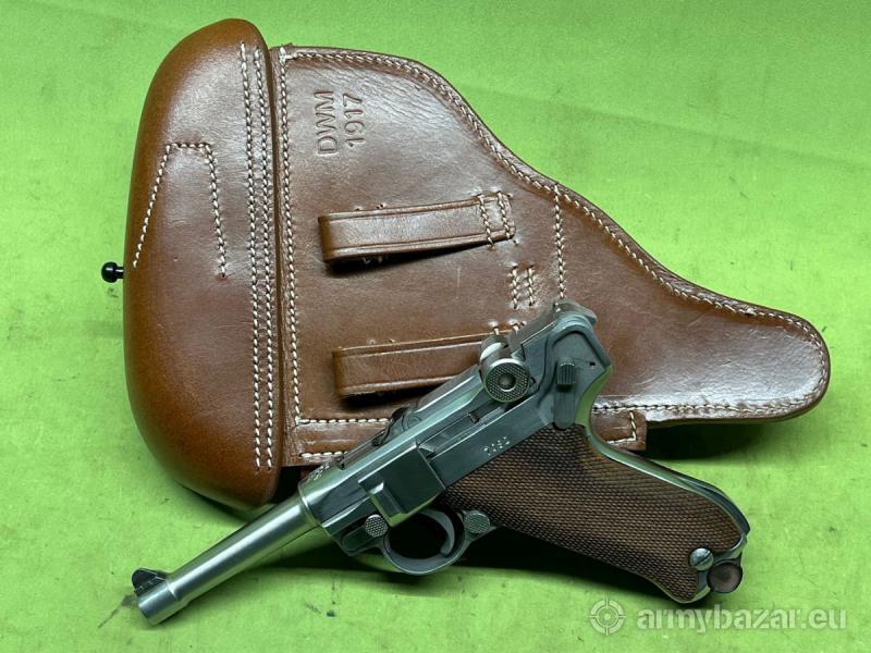 Opis: Oferowany pistolet znajduje się w stanie idealnym - praktycznie jak nowy. Nie był dużo strzelany co widać po stanie powierzchni, mechanizmów czy wykonanych z orzecha amerykańskiego okładzinach chwytu. Lufa w stanie idealnym - lustro, jak nowa. Broń wyprodukowana w ramach limitowanej serii, rzadko spotykana w Europie. W komplecie magazynek z drewnianym kopytkiem oraz kabura będąca współczesną repliką - tak samo jak broń w stanie idealnym.