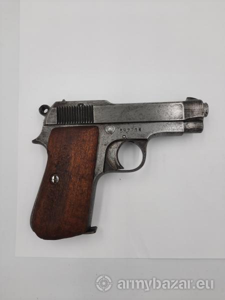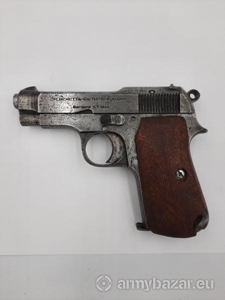 Opis: Pistolet Beretta,Gardone V.T.1944. Stan wizualny broni jest widoczny na zdjęciach. Lufa bardzo dobra, gwint wyraźny. Broń sprawna. Dane techniczne broni: – kaliber: 7,65 mm; – długość całkowita : 15cm; -długość lufy: 8,5cm; -waga: 670g.
