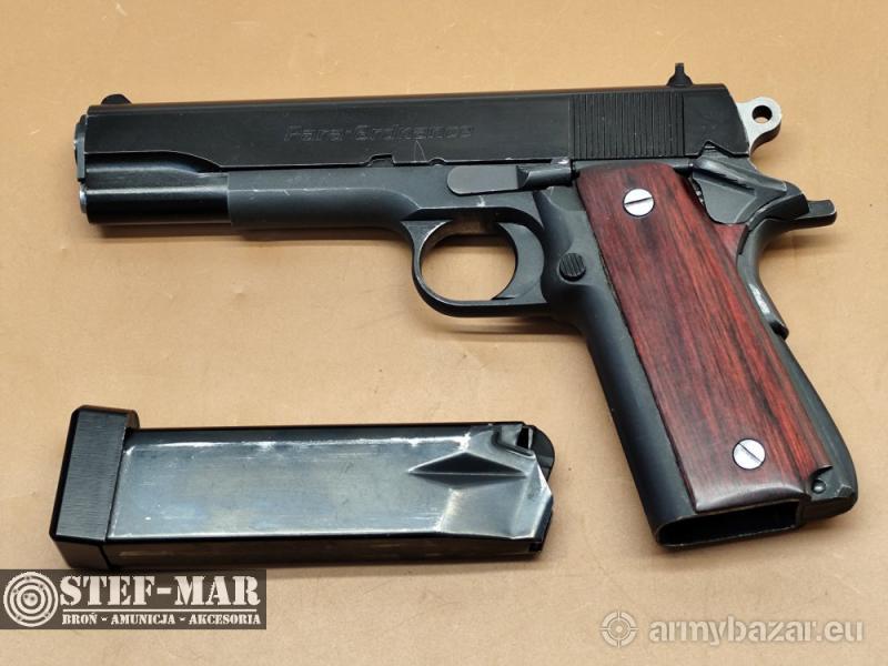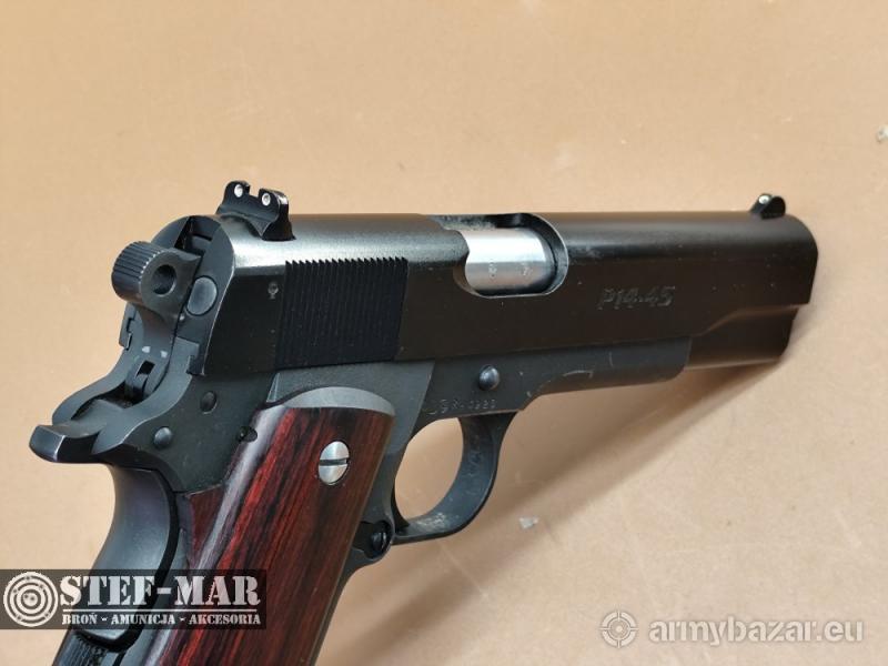 Opis: DARMOWA DOSTAWA PRZEZ CAŁĄ POLSKĘ. Broń używana, sprawna w 100%. Para Ordnance P14-45 był pierwszym wariantem legendarnego Colta 1911 wyposażonym w magazynek dwurzędowy.Szkielet i zamek,wykonany z odlewu stalowego,zapewnia trwałość dla tak dużego kalibru.Broń posiada przetarcia oksydy i fosfatowania. Broń po przeglądzie rusznikarskim, przestrzeliwana na strzelnicy. - dł całk: 220mm - dł lufy: 126mm - waga: 1152g Do broni dołączam fakturę VAT. W razie pytań proszę dzwonić właściciel 501 682 999, biuro 516 904 226 Możliwość dostarczenia broni we wcześniej uzgodnione miejsce w kraju. BROŃ PALNA! Wymagane jest pozwolenie na broń. Nr broni: RH4923 Nr kat: C5129