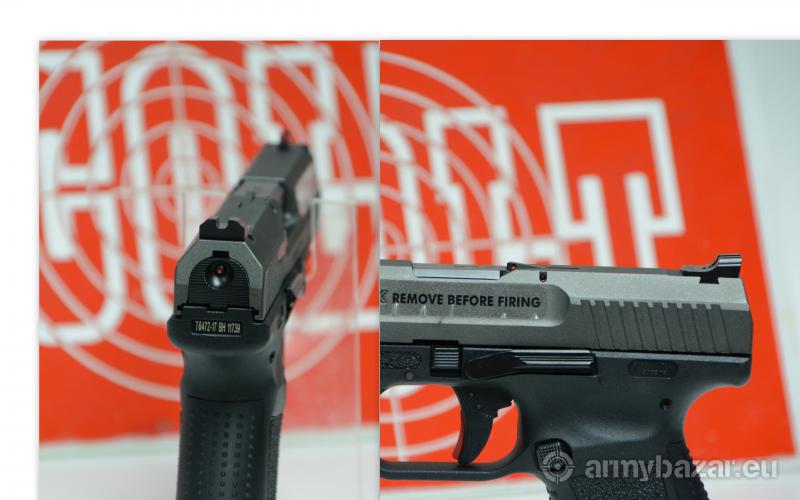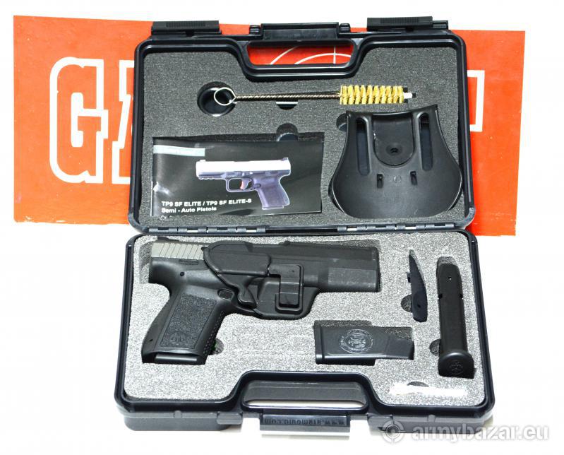 Opis: Turecki kompaktowy pistolet z polimerowym szkieletem Canik TP9SF Elite kaliber 9mmPara ,nowinka na polskim rynku.W zestawie z bronią 2 magazynki,kabura roto,szybkoładowacz ,wymienny grzbiet rękojeści i zestaw do czyszczenia.
