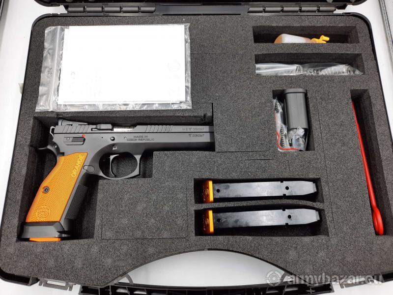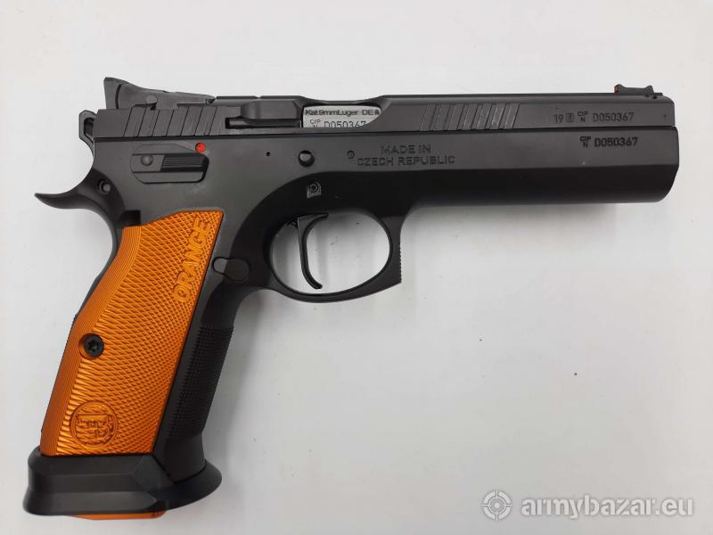 Opis: Pistolet CZ 75 TS Orange to wyczynowy pistolet sportowy, przeznaczony do strzelania w konkurencjach zgodnych z regulaminem IPSC. Konstrukcja pistoletu została zmodyfikowana w celu zapewnienia maksymalnej dynamiki i precyzji strzelania oraz najwyższej ergonomii. CZ TS Orange opiera się na klasycznej i sprawdzonej konstrukcji CZ 75, którą zmodyfikowano na podstawie sugestii i oczekiwań strzelców sportowych. Cechy pistoletu CZ 75 TS Orange: precyzyjnie regulowany mechanizm spustowy pojedynczego działania SA lekka szkieletowa konstrukcja kurka zmniejszająca opór spustu powiększony zwalniacz magazynka nowe teksturowanie szkieletu www.snajper511.pl