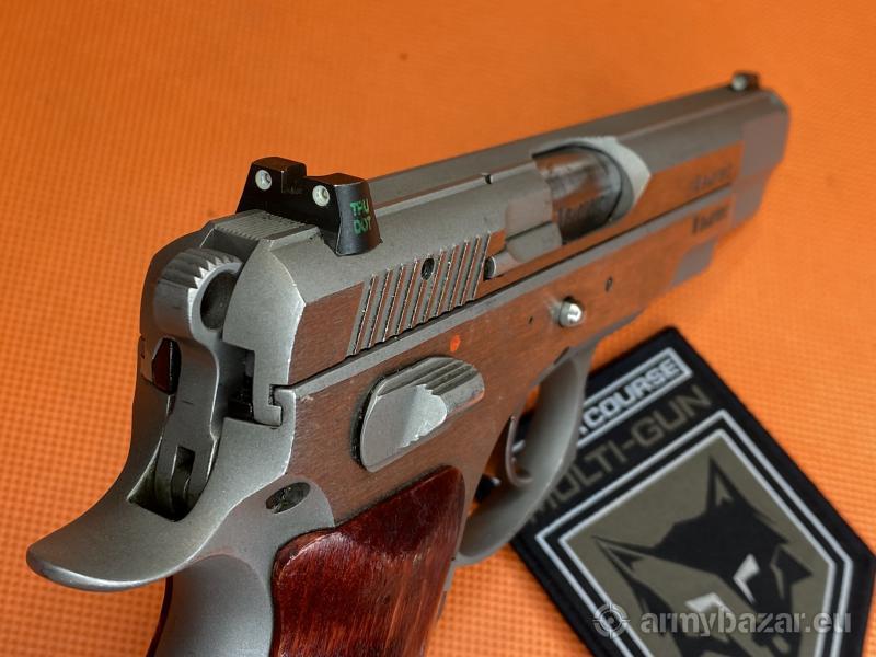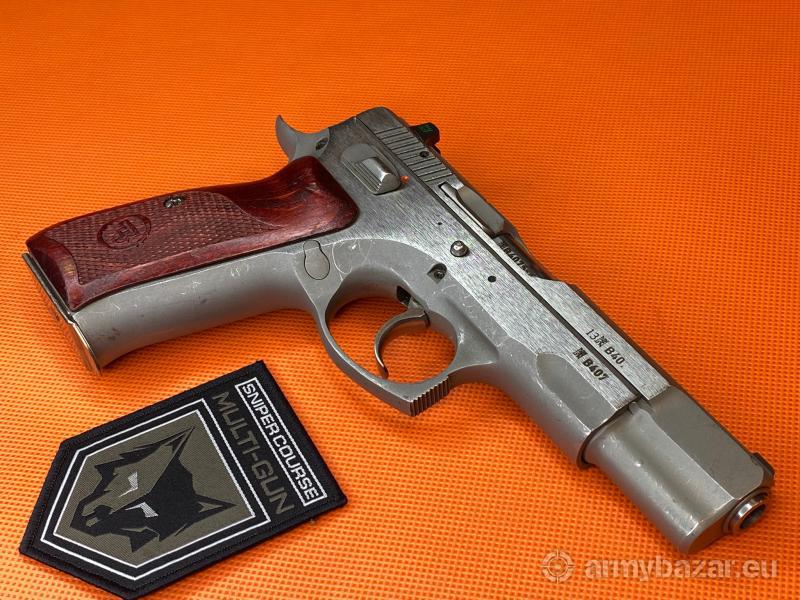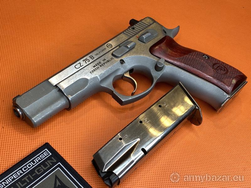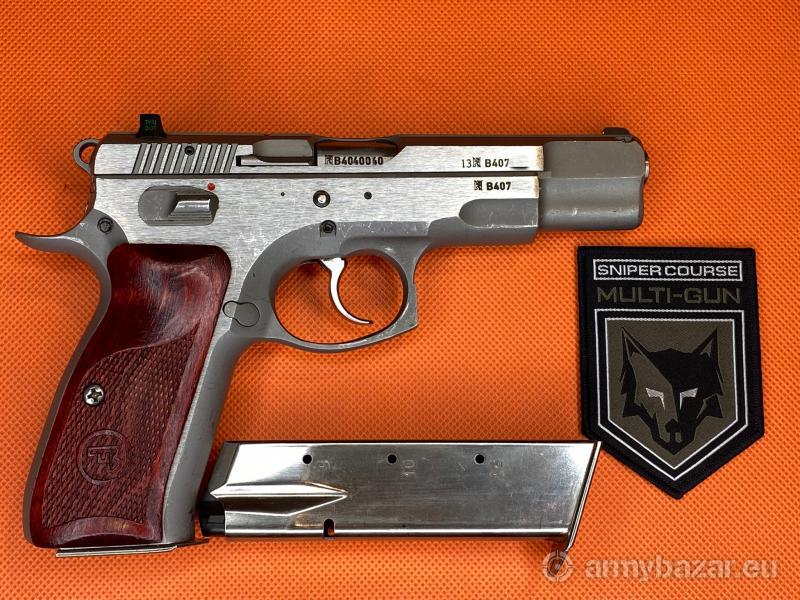 Opis: Pistolet CZ 75B Omega Inox kal. 9x19mm. Broń nosi normalne ślady używania, w zestawie 2 chromowane magazynki. Wstawione metalowe przyrządy celownicze firmy TRUE DOT. Broń można obejrzeć w Sklepie Multi-GUN we Wrocławiu.