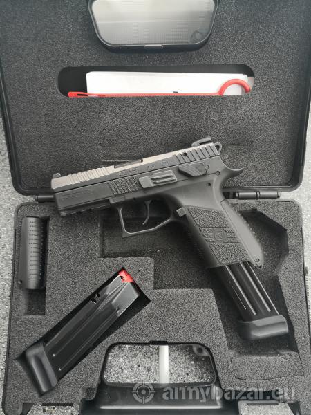 Opis: Używany pistolet CZ z wyposażeniem oraz kaburą i ładownicą.
