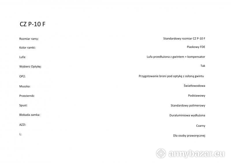 Opis: Fabrycznie nowy! Rocznik 2021. Dokładna specyfikacja wg konfiguratora CZ: w dodanych zdjęciach, ale mogę też przesłać na e-mail. Aktualnie ta konfiguracja jest niedostępna w fabryce CZ (brak luf z gwintem). Gratis nowa czarna nakładka chwytu rozm. S (robi piękny kontrast). Dodatkowo mogę sprzedać fabrycznie nowy, nieużywany spust Top Strely. Kolor czarny. Taki: https://rparms.pl/mechanizmy-spustowe/205-top-strely-jezyk-spustowy-2-sprezyny-iglicy-gen-2-cz-p-10-czarno-czerwony.html Poprawia pracę spustu o ok. 50%. Względem Glocka to 150% lepiej ;) Cena spustu: 320 zł. Cena fabryczna pistoletu: 4310 zł. Czeka się ok. 2 miesiące. Spust ostatnio był dostępny za 350 zł.