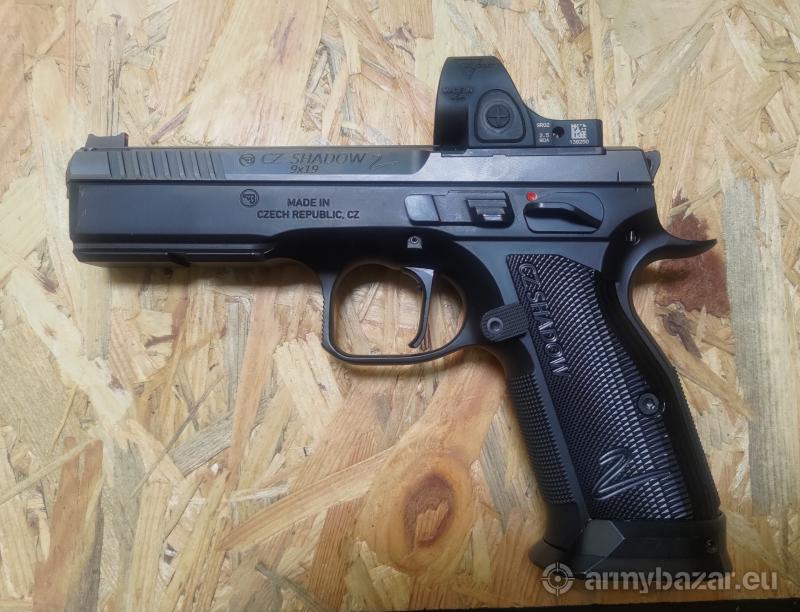 Opis: Witam mam do sprzedania Pistolet CZ Shadow 2 OR 9x19 mm z zamontowanym kolimatorem Trijicon SRO 2.5 MOA Red Dot. Pistolet ma nastrzał około 1000 szt. Zostało zamontowane; - płytka kolimatora pod Trijicon SRO - 200 pln - bezpiecznik powiększony oburęczny - 380 pln - lejek alu - 440 pln - duralowy spust przesunięty do przodu SA od renomowanego rusznikarza Zendl - 280 pln - krótkie alu okładziny - 440 pln No i oczywiście kolimator (oryginalny) Trijicon SRO Specialized Reflex Optic 2.5 MOA Red Dot - około 4200 pln Spust, okładziny itp oryginalny w zestawie. Cena takiego nowego zestawu to około 13000 pln