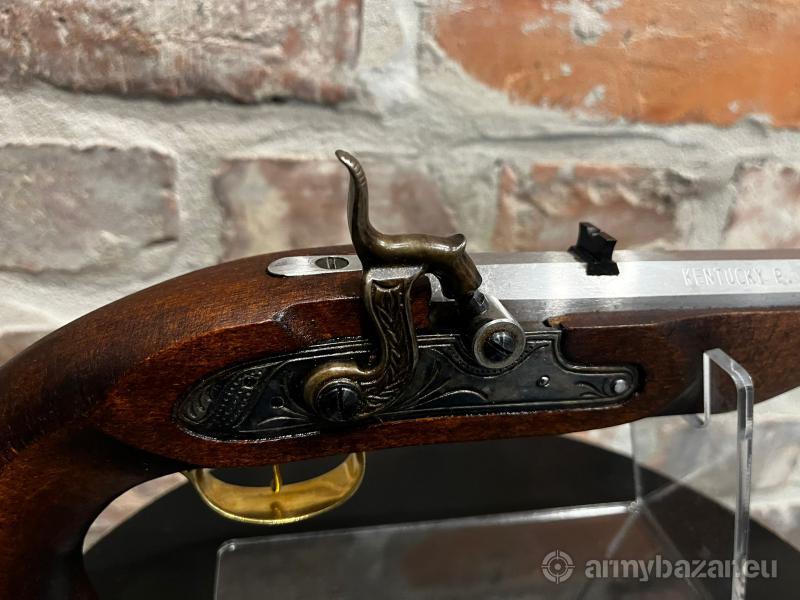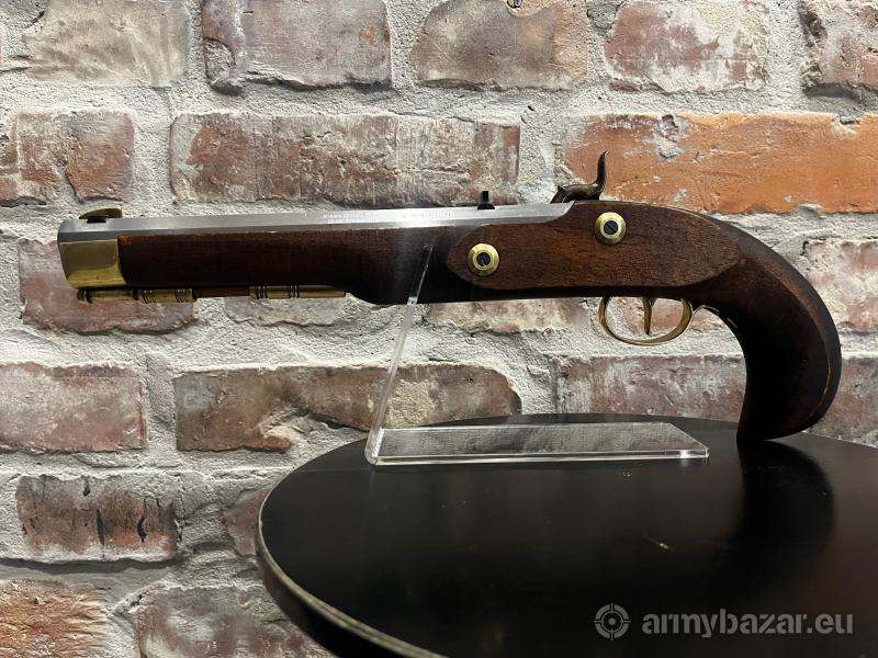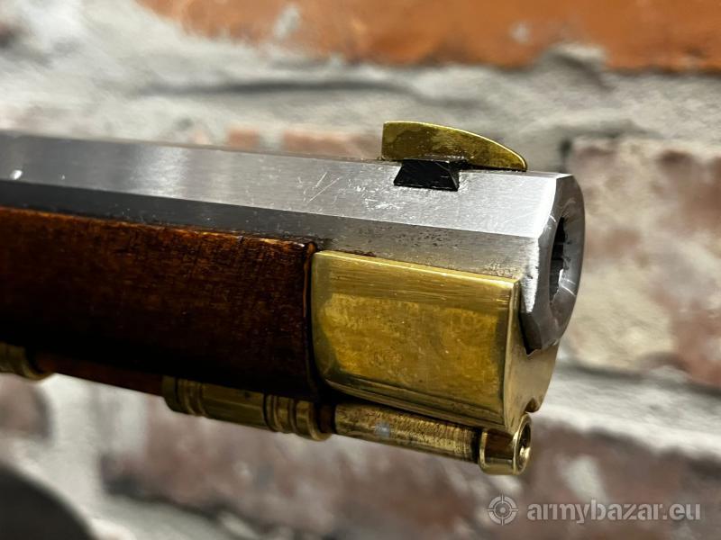 Opis: Klasyczny amerykański pistolet, wykorzystywany podczas „Wojny o Niepodległość” przez osadników z zachodu. Drewno bukowe wraz z okuciami mosiężnymi, drewniany pobijak, mosiężna muszka oraz chwyt typu „bird head” nadają temu pistoletowi bardzo uniwersalne cechy. Zamek kapiszonowy z hartowanej stali. Broń komisowa. Stan: używany, bardzo dobry. Ogłoszenie ma charakter informacyjny, sprzedajemy tylko i wyłącznie stacjonarnie osobom pełnoletnim, możliwa telefoniczna rezerwacja. Cały asortyment widoczny na stronie guns-ammo.pl. W myśl art. 11 ust. 10 ustawy o broni i amunicji nie wymaga pozwolenia na broń posiadanie broni palnej rozdzielnego ładowania wytworzonej przed 1885r bądź jej repliki.