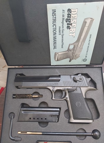 Opis: Legendarny Orzeł Pustyni w kal. 44Magnum. Lufa kuta na zimno - gwint poligonalny. Duży, ciężki pistolet w rzadko spotykanym kalibrze. Wystąpił w produkcjach filmowych takich jak „Commando”, Arnold Schwarzenegger „Punisher”, Nikita u Luca Bessona czy Vinnie Jones w „Przekręcie” Broń w stanie idealnym. Do obejrzenia w Lublinie. Tel 665055142