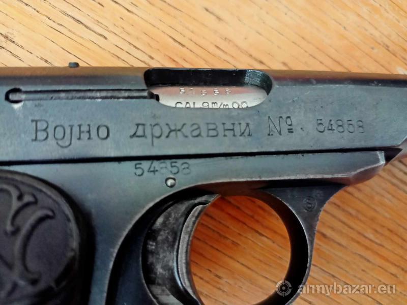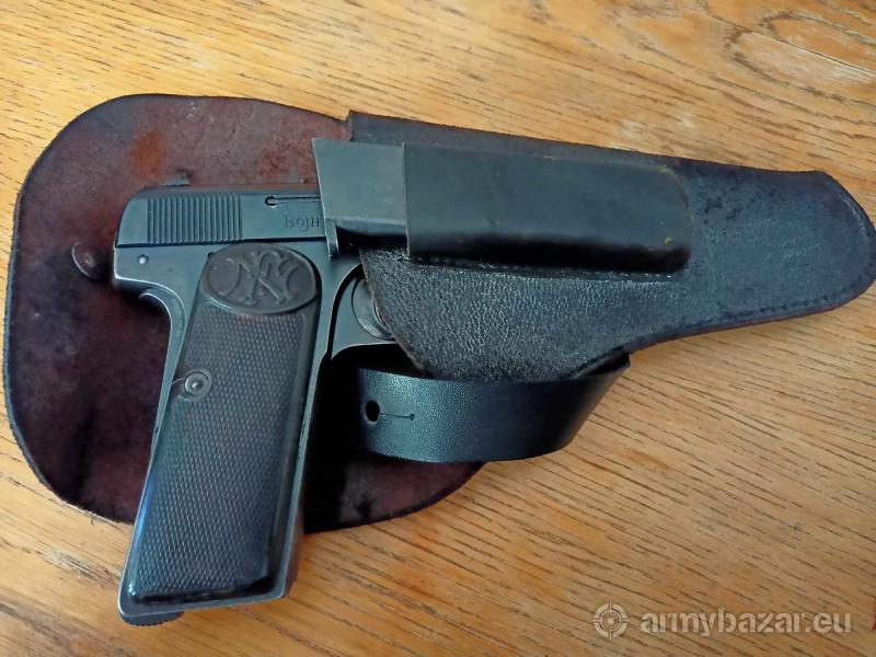 Opis: Pistolet FN 1910/22 w rzadszym kalibrze 9x17mm, 380 auto. Wersja przejeta przez armie Jugosławii, wybity napis Wojno drżawni, oraz herb na zamku. Egzemplarz sprawny, zgodny numerycznie, kabura ma naprawiany pasek. Gwint lufy wyraźny, brak wżerów.. Wymagana promesa. Świętokrzyskie, tel. 6=0=1=6=9=5=5=8=4