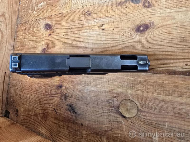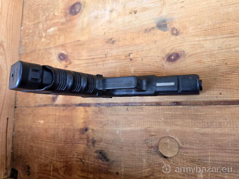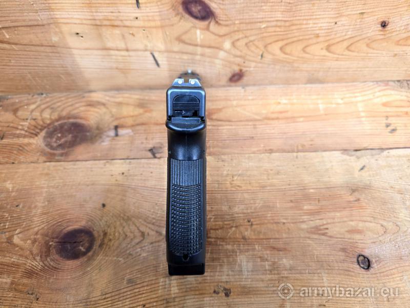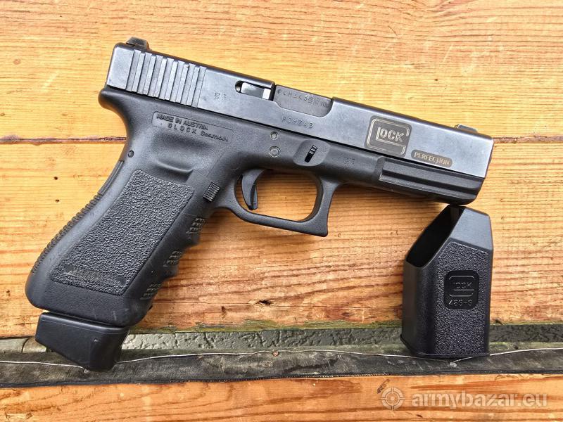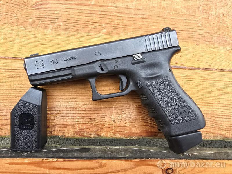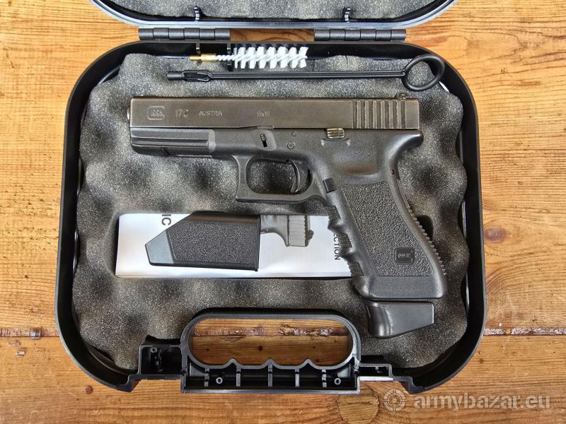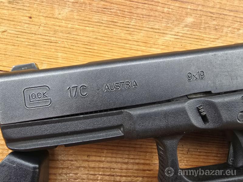 Opis: Pistolet samopowtarzalny Glock 17 C, kal. 9x19. Wersja z fabrycznym portingiem lufy i zamka. Broń po wewnętrznej ochronie firmy Glock (grawer po prawej stronie zamka). Produkcja Austria - Glock GmbH - Deutsch-Wagram - około 2014 r. Lufa lustro w stanie bardzo dobrym. Broń w oryginalnej powłoce, Generacja 3 na dwóch kołkach. Stalowe trytowe przyrządy celownicze oraz szyna. W komplecie jeden powiększany magazynek 17 nabojowy. Lokalizacja Brzoza pod Bydgoszczą. Tel. 790-280-454