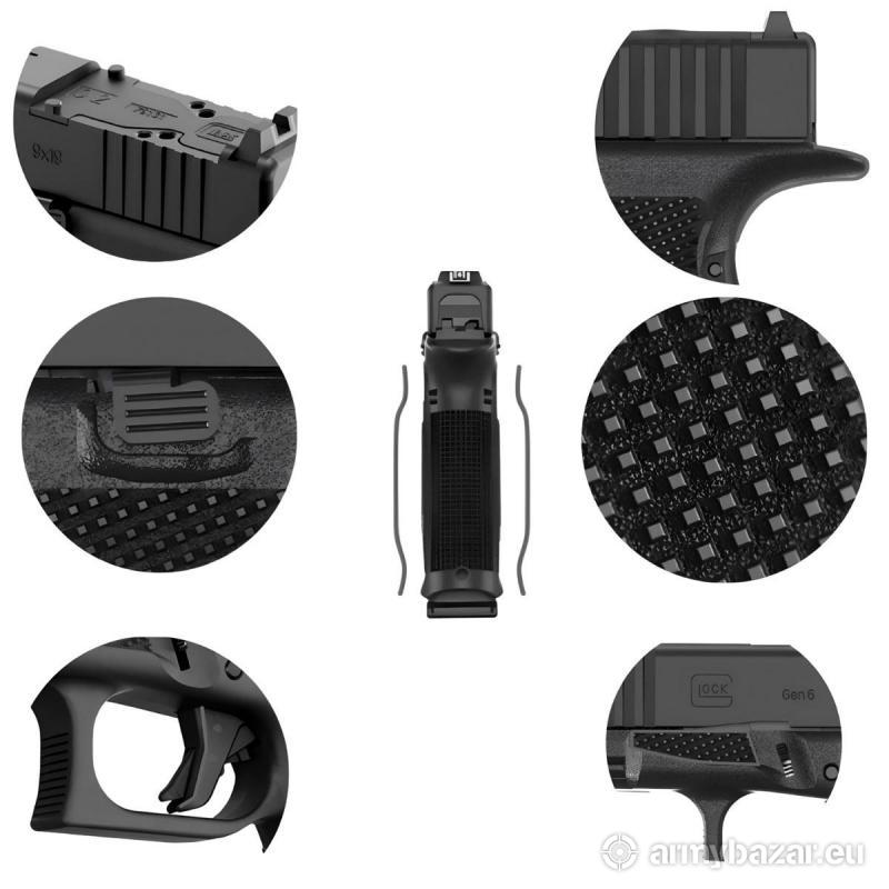 Opis: arms.com.pl. Broń nowa. Pistolet Glock 17 Gen. 6 OR kal. 9x19 W zestawie: 2 Magazynki Szybkoładowarka do magazynków Zestaw do czyszczenia (wycior z miejscem na szmatkę, szczotka) Instrukcja obsługi Walizka na pistolet Zestaw nakładek na chwyt Płytki pod montaż kolimatora Specyfikacja: Kaliber: 9×19 mm Długość całkowita: 202 mm Wysokość: 139 mm Szerokość: 32 mm Długość lufy: 4,4” (114 mm) Waga (z pustym magazynkiem): 705g