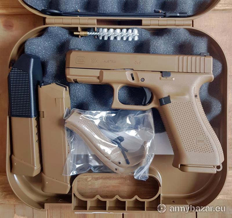 Opis: Nowy pistolet GLOCK 19 X COYOTE. Cechy produktu: Kaliber: 9x19 # Poj. magazynka: 17 # Szkielet: pełnowymiarowy ,polimer powłoka nPVD # zamek compakt # Dł. lufy [mm]: 102 # Dł. całkowita [mm]: 189 ; Wysokość [mm]: 139 ; Szerokość [mm]: 33; Waga [g]: 625 # powiększony obustronny przycisk zwalniania magazynka # nowa lufa GMB ( GLOCK MARKSMAN BARREL ) # zmodyfikowana korona lufy # powiększony port( lejek ) magazynka # teksturowana powierzchnia rękojeści # dodatkowe wymienne okładki rękojeści # opór spustu 26N # # bezpiecznik SAFE ACTION # mocowanie do smyczy # PŁATNOŚĆ GOTÓWKĄ