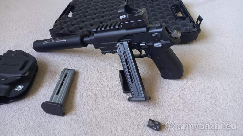 Opis: Witam Sprzedam pistolet GSG Firefly w kalibrze 22.lr Przebieg między 500 a 700 szt amunicji. W ofercie jest cały komplet przedstawiony na zdjęciach czyli walizka, kabura, 2 magazynki, szyna do montażu kolimatora, kolimator i dodatkowe "przedłużenie lufy" ;) Plus 2 paczki amunicji gratis. Pistolet w pełni sprawny i bez wad Zapraszam do kontaktu chętne do zakupu osoby posiadające odpowiednie uprawnienia.