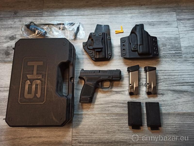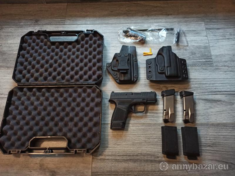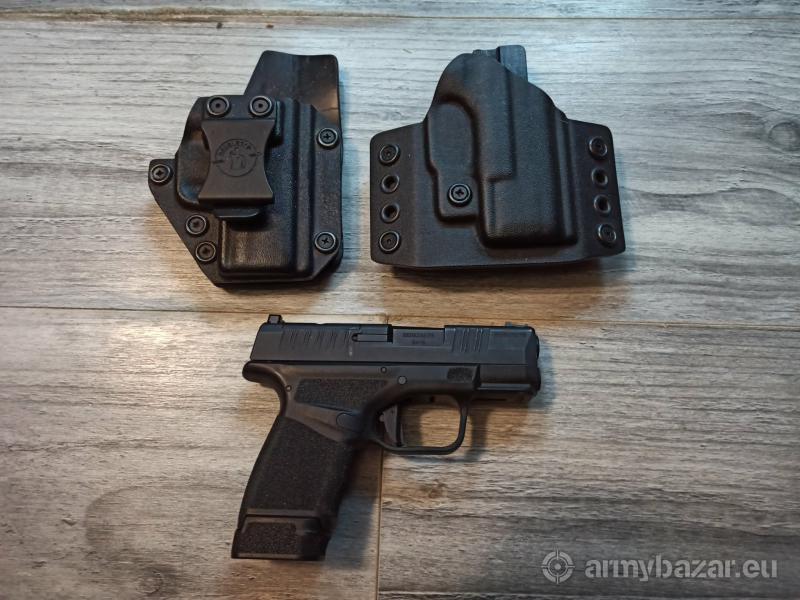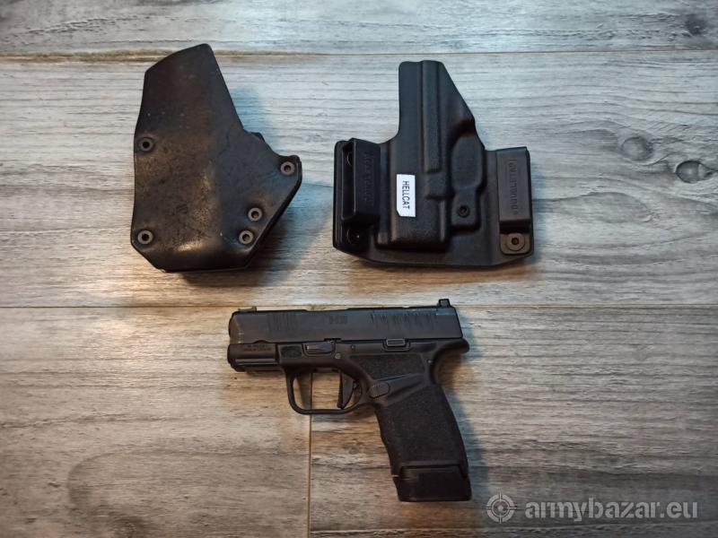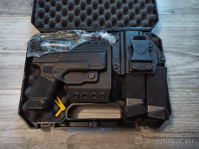 Opis: Pistolet HS H11 Hellcat OSP Kaliber 9x19mm Optic Ready. Wystrzelone jakieś 200/300 kulek Drobne ślady użytku, Przetarcia od kabury, troche był noszony w kaburze, potem leżał w szafie. Technicznie bez zastrzeżeń - mały przebieg, użycie znikome Pierwszy właściciel. Przerzuciłem sie na coś większego do noszenia, a na strzelnice niestety czas nie pozwala Wraz z pistoletem w zestawie są: 3x org magazynki 13rd 2x kabura (wew i zew, double tap), 2x ładownica na magi - molle, zestaw do czyszczenia, flaga, walizka, tel: 793 703 803