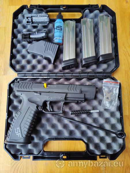 Opis: Pistolet kupiony w kwietniu 2022 roku. Wystrzelone: około 1800 sztuk amunicji, w większości fabryczna, około 200 szt. elaborowanej Pistolet w bardzo dobrym stanie. W doskonałym stanie technicznym, zadbany, z niskim przebiegiem. Pistolet doskonale leży w dłoni, dobrze wyważony. W skład zestawu wchodzi: - pistolet - 3 magazynki 19 nabojowe - 3 wymienne nakładki na chwyt - lejek gniazda magazynka (możliwość demontażu) - szybkoładowarka - wycior + szczotka - oryginalny olej - kluczyk do regulacji - instrukcja obsługi - flaga bezpieczeństwa - pudełko na broń - 50szt amunicji 9x19 PFA elaborka - sprężynki redukujące wagę spustu - 50szt amuni