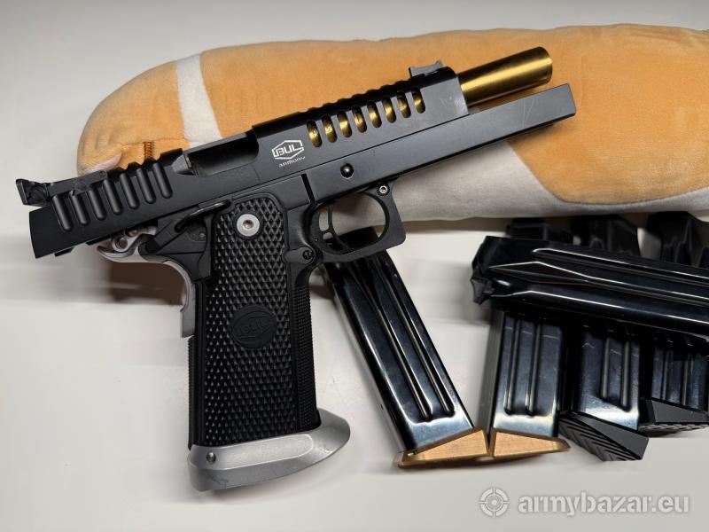 Opis: Pistolet znanego producenta, szybki, niezawodny, bardzo precyzyjny, użytkowany bardzo sporadycznie, istnieje możliwość sprawdzenia na strzelnicy, dodatkowo 5 magazynków metalowych pistolet w konstrukcji "911",