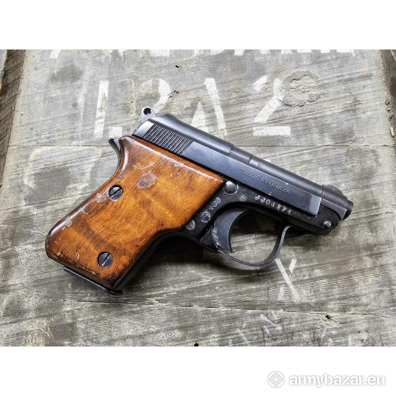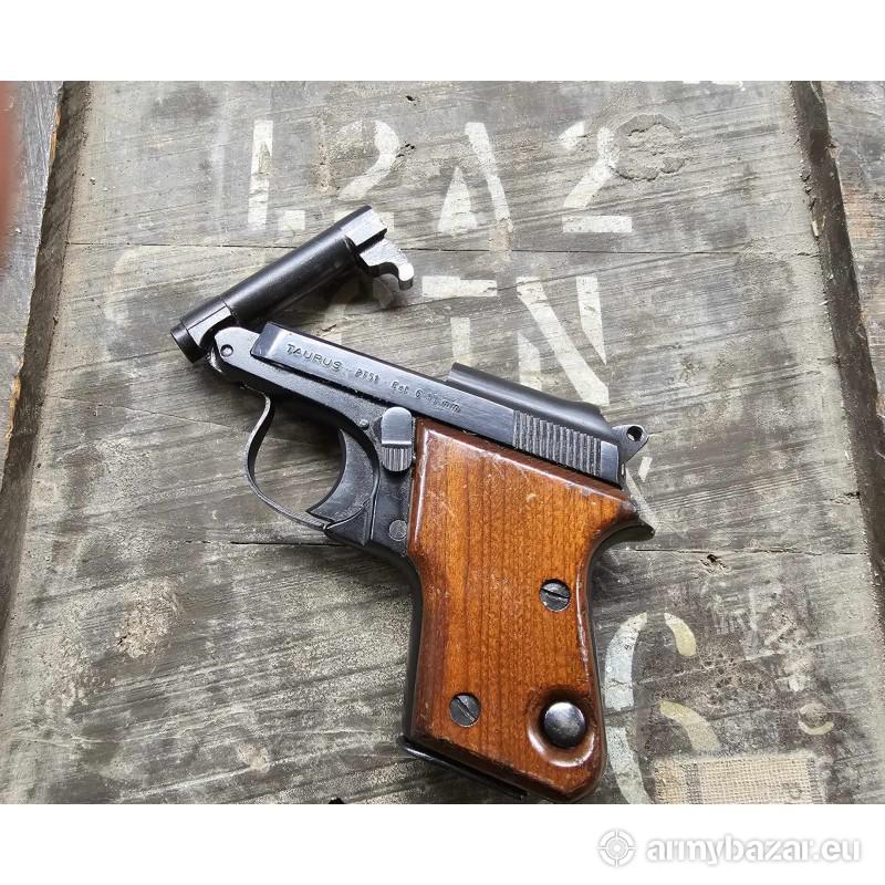 Opis: Na sprzedaż kieszonkowy pistolet Taurus PT-51 w kalibrze 6,35 mm Browning (.25 ACP). Kopia Beretty 21 i jej wariantów. Broń nie wymaga odciągania zamka do przeładowania - posiada odchylaną lufę! (tip-up barrel). Tego typu broń używana była przez wszelkiej maści służby specjalne oraz szpiegów. Pistolet jest niewiele większy od standardowego smartfona! Bardzo lekka konstrukcja (ok. 340g). Z tych powodów był chętnie wybierany przez kobiety. Egzemplarz zachowany w bardzo dobrym stanie, jedynie lekkie otarcia lakieru na okładzinach. Możliwa dostawa na terenie całego kraju!