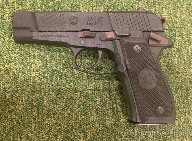 Opis: Pistolet MAG-95 kaliber 9mm Parabellum rok prod. 1998, stan bardzo dobry (lekkie ślady noszenia). W komplecie dwa magazynki zgodne numerycznie.