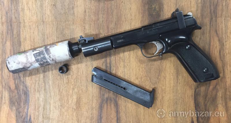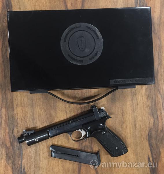 Opis: Pistolet Margolin kaliber 22 LR. Pistolet w ładnym stanie, bardzo celny, regulowane przyrządy celownicze we wszystkich płaszczyznach zarówno szczerbina jak i mucha, obciążnik lufy, i co ciekawe rzadko spotykana wersja z gwintem lufy pod tłumik 1/2 x 20”. Tel. 604569430