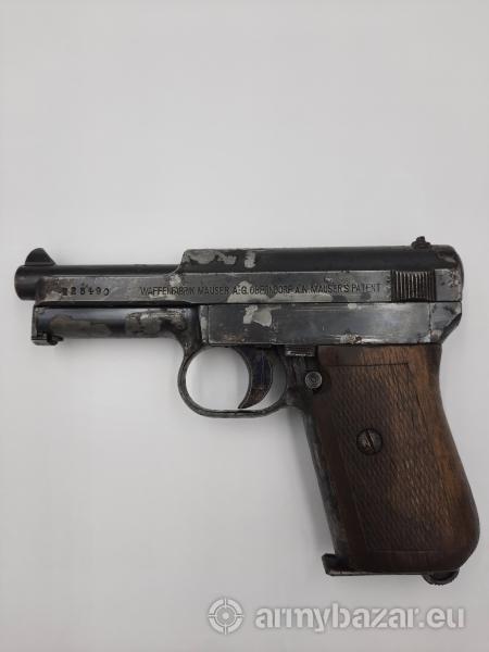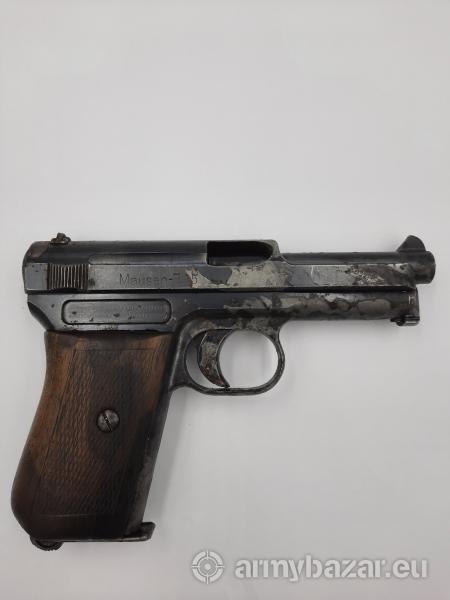 Opis: W 1921 roku rozpoczęto produkcję pistoletów M1910 model III (lata produkcji 1921-1923). Od modelu II różnią się one liczbą rowków służących do odciągania zamka (siedem zamiast dziewięciu) i mają numery od 221 800 do 345 000. Odmiana ta była szeroko eksportowana (największym odbiorca była Portugalia), w tym także do Polski. Broń sprawna. W komplecie 2 magazynki i kabura. Specyfikacja: Kaliber: 7,65 x 17 mm SR (.32 ACP) Długość broni: 152 mm Długość lufy: 86 mm Lufa 6-bruzdowa w prawo o skoku: 200 mm Pojemność magazynka : 8 Prędkość pocisku: 290 m/s