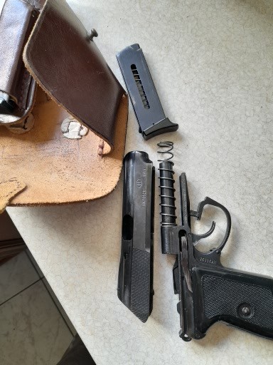 Opis: P-64 Radom kal.9milimetrów,rok 1968,stan broni-moim zdaniem -fabryczny,lufa lustro.2magazynki kabura.