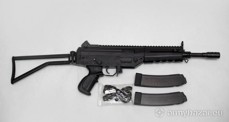 Opis: Caliber 9 mm Range 300 m Action Delayed blowback Magazine capacity 10-20-30 Overall Length 783 Height without magazine 210 mm Width 55 mm Barrel Length 270 mm Weight without magazine 3150 g Operation Semi-automatic Safety Manual Ammunition 9x19 mm
