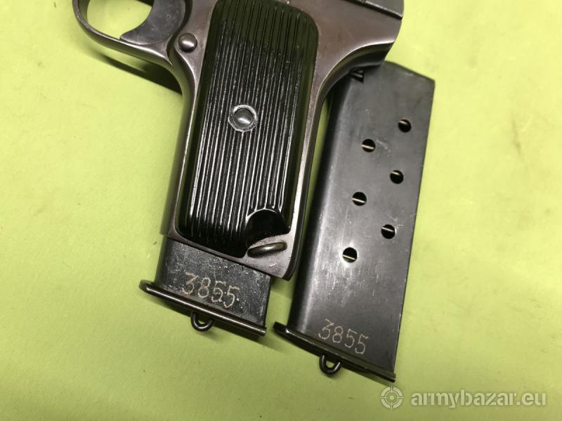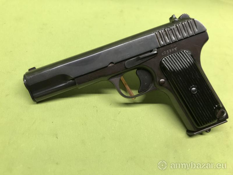 Opis: Wariant pistoletu samopowtarzalnego TT-33 Tokariewa produkowany po II Wojnie Światowej w Polsce przez zakłady Łucznik w Radomiu. Kaliber 7,62x25mm, na zamku oznaczenie producenta - 11 w owalu. Zgodny numerycznie, w komplecie dwa magazynki - również zgodne. Stan techniczny bardzo dobry, lufa zmatowiona.