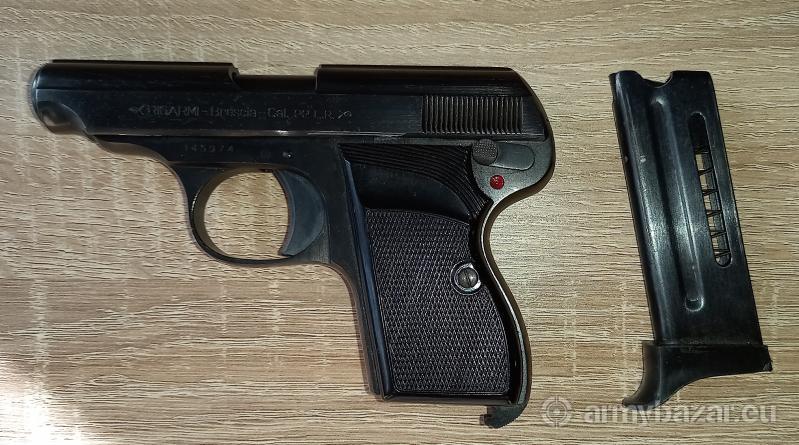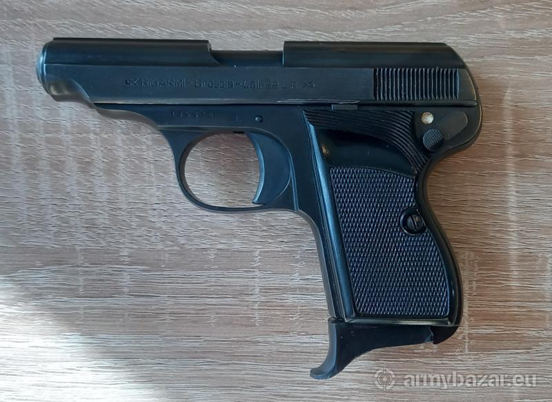 Opis: Pistolet RIGARMI Brescia kal. 22 LR z 1972 roku. Produkt włoski. Ten niewielki, całkowicie sprawny pistolet ma lufę o długości 9 cm. Jeden magazynek o pojemności 7 naboi.