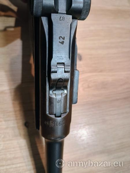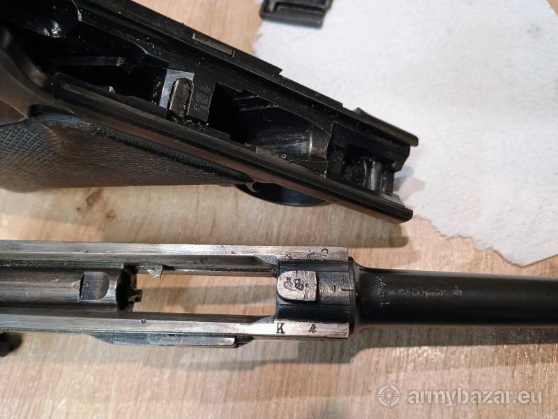 Opis: Lufa w stanie "dobry minus", pokryta wżerami na całej powierzchni, ale gwint jest wyraźny. Niestety bardzo często właśnie tak wyglądają lufy w P08. Stąd też bardzo dużo egzemplarzy miało wymieniane lufy. Do tego mamy oznaczenie "X", które było nabijane na broni zdobytej przez Rosjan podczas II wojny. Taka broń była rozkładana, remontowana i składana później bez zgodności numerycznej, np zamek z jednego egzemplarza, kolanko z innego. Tak też jest tutaj. Zapraszamy serdecznie Sklep Myśliwski EDEX Warzyce 209 38-200 Jasło 13 44 58 339, 607 263 091