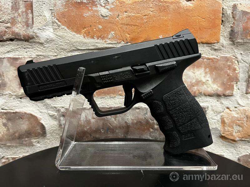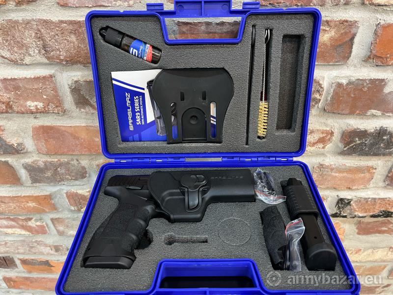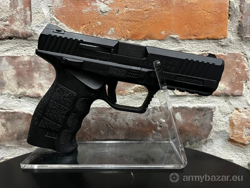 Opis: Pistolet Sarsilmaz SAR9 METE kal. 9×19. Wersja METE to model o nieco cieńszym profilu zamka, co oznacza redukcję całkowitej masy broni (750 g). Pistolet wyposażony w bezpiecznik zamka. Chwyt z wymiennymi okładkami (z tyłu i po bokach) pozwala w pełni dostosować go do dłoni strzelca. SAR9 jest standardowo wyposażony w klasyczne celowniki trójpunktowe i szynę Picatinny do montażu dowolnego oświetlenia. W zestawie: walizka, 2x magazynki 17nb, szybkoładowacz, kabura na płetwę, olej, wycior. Broń nowa. Ostatnia sztuka powystawowa (otarcia na lewej stronie zamka). Produkt koncesjonowany, dostępny za okazaniem odpowiednich dokumentów. Tel. kontakt 737 396 130 lub przez guns-ammo.pl